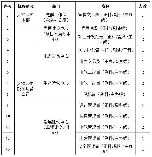 根據(jù)工作需要,現(xiàn)面向國家電投集團(tuán)系統(tǒng)內(nèi)單位公開招聘,具體事項(xiàng)公告如下: