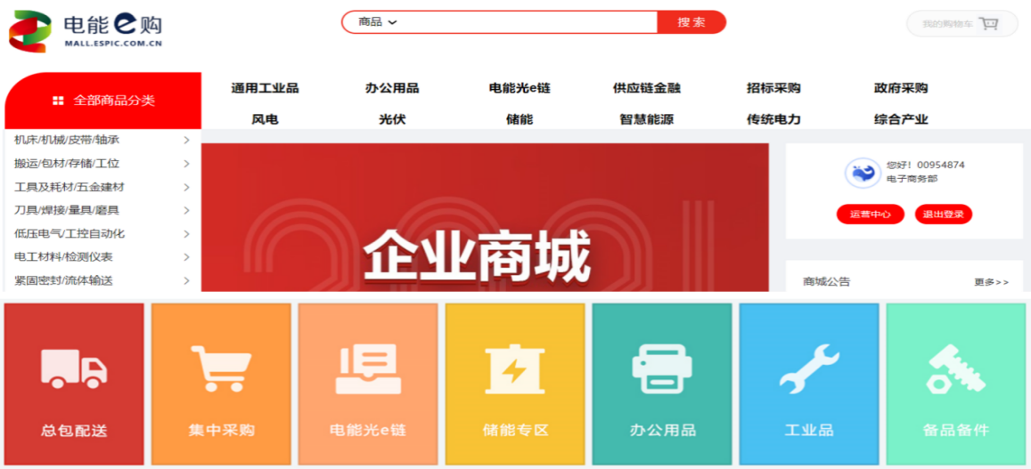電能e購是國家電投集團(tuán)唯一的電子商務(wù)平臺,是集團(tuán)公司"一網(wǎng)一平臺"戰(zhàn)略中的電商采購平臺實施主體。"電能e購"新能源電商平臺服務(wù)涵蓋風(fēng)電、光伏、儲能、總包配送、集中采購、電能光e鏈、通用工業(yè)品、備品備件、綠電交通、綜合智慧能源、技術(shù)獵頭等內(nèi)容,為集團(tuán)公司主要產(chǎn)業(yè)設(shè)備和材料等實施電商化采購提供平臺服務(wù)。通過“一站式”采購與服務(wù)覆蓋供應(yīng)鏈全流程,打通上下游供應(yīng)鏈通道,同時擴(kuò)充子站交易模式,建設(shè)電能生態(tài)圈。平臺將集團(tuán)公司2015年首創(chuàng)的光伏主設(shè)備年度框架招標(biāo)模式與電商業(yè)態(tài)、平臺經(jīng)濟(jì)相結(jié)合,以組件長協(xié)采購優(yōu)秀實踐經(jīng)驗結(jié)合"自營+撮合"電商經(jīng)營模式,推進(jìn)新能源關(guān)鍵設(shè)備、重要原材料等采購全面線上化,提前鎖定產(chǎn)能和價格,確保供應(yīng)鏈安全,控制采購成本,保障平臺服務(wù)"陽光、綠色、高效、便捷"。
