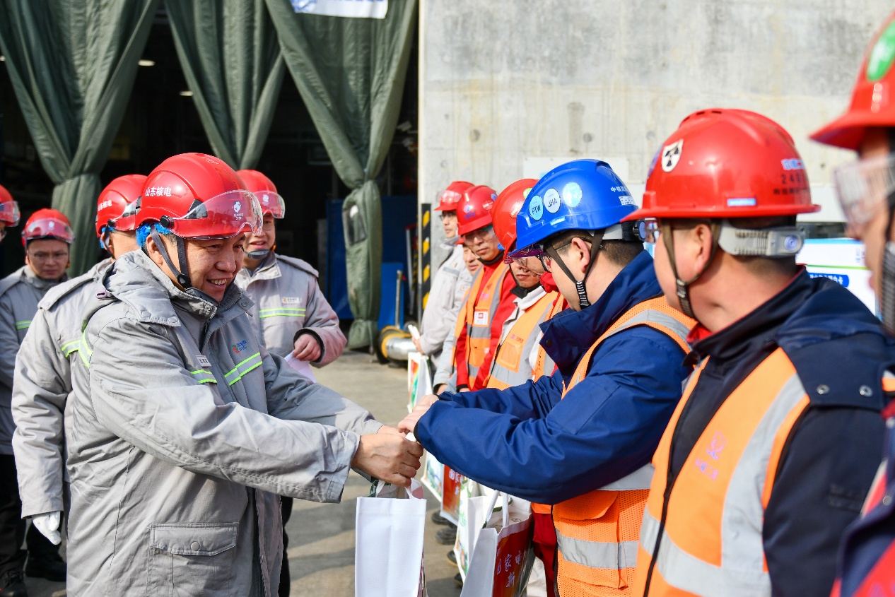 調(diào)研期間,劉明勝代表集團(tuán)黨組看望慰問了山東核電、國核設(shè)備生產(chǎn)、建設(shè)一線職工,與大家親切交流并致以誠摯問候和春節(jié)祝福。