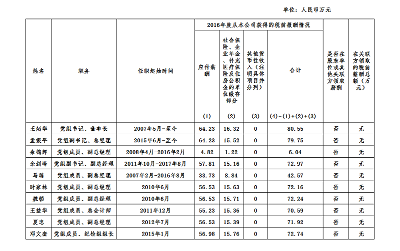 上表披露信息為我公司企業(yè)負(fù)責(zé)人2016年度全部應(yīng)發(fā)稅前薪酬,按國(guó)家規(guī)定由單位繳存各種社會(huì)保險(xiǎn)等,其中,第(1)項(xiàng)由國(guó)務(wù)院國(guó)資委核定。