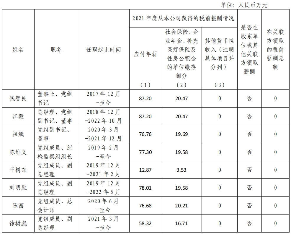 國家電力投資集團有限公司企業(yè)負責人2021年度薪酬情況
