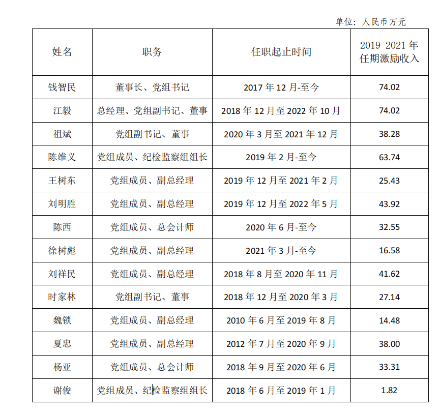 國(guó)家電力投資集團(tuán)公司企業(yè)負(fù)責(zé)人2019-2021年任期薪酬情況