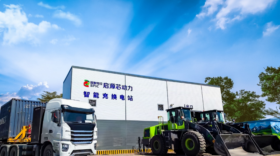 ▲國家電投“獨(dú)角獸”成長企業(yè)啟源芯動(dòng)力研發(fā)生產(chǎn)的換電工程車輛及充換電站