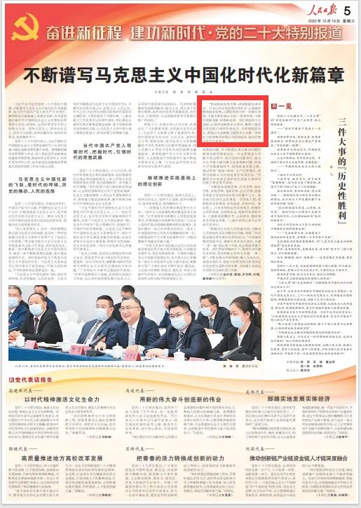 10月19日,《人民日報》“奮進(jìn)新征程 建功新時代·黨的二十大特別報道”專版頭條刊發(fā)《不斷譜寫馬克思主義中國化時代化新篇章》。報道中,國家電力投資集團(tuán)有限公司黨組成員、副總經(jīng)理盧洪早代表表示:“抓創(chuàng)新就是抓發(fā)展,謀創(chuàng)新就是謀未來。只有以科學(xué)的態(tài)度對待科學(xué)、以真理的精神追求真理,以滿腔熱忱對待一切新生事物,才能不斷拓展認(rèn)識的廣度和深度,不斷實現(xiàn)新突破、取得新成果。我們將堅持守正創(chuàng)新,以國家戰(zhàn)略需求為導(dǎo)向,集聚力量進(jìn)行原創(chuàng)性引領(lǐng)性科技攻關(guān),為保障能源安全、增強自主創(chuàng)新能力提供有力支撐!币韵聻閳蟮廊模