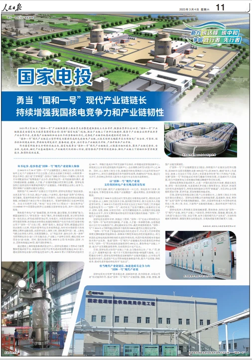 《人民日?qǐng)?bào)》整版報(bào)道國家電投勇當(dāng)“國和一號(hào)”現(xiàn)代產(chǎn)業(yè)鏈鏈長