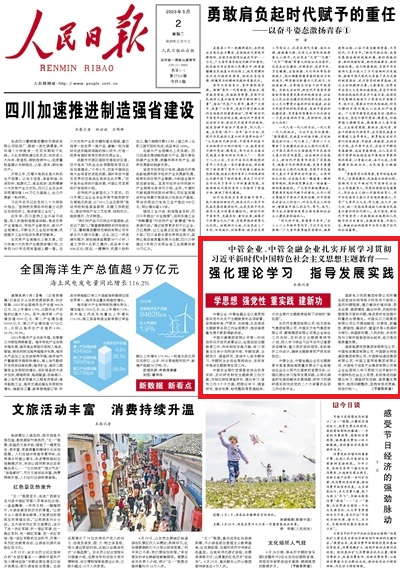 《人民日報》頭版:中管企業(yè)、中管金融企業(yè)扎實開展學(xué)習(xí)貫徹習(xí)近平新時代中國特色社會主義思想主題教育——強化理論學(xué)習(xí) 指導(dǎo)發(fā)展實踐(學(xué)思想 強黨性 重實踐 建新功)